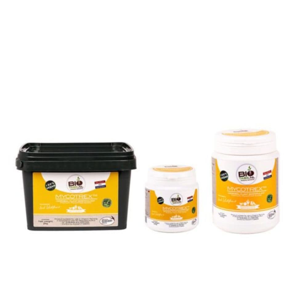 Mycotrex de BioTabs est un améliorateur de sol haute performance, formulé à partir d’un mélange de 9 espèces de mycorhizes endo‑fongiques, enrichi en bactéries bénéfiques, farine d’algues et acides humiques.